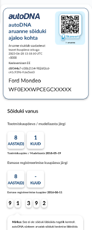 Lae alla aruanneMeie baasaruanne võib osutuda vägagi kasulikuks juhul kui Te soovite kontrollida kasutatud auto kohta käivat informatsiooni. Aruandes sisalduvad andmed võivad olla lähtepunktiks, mida saab kasutada autoga varasemalt toimunud sündmuste kohta informatsiooni saamiseks. Vaata siit, mida me autoDNA aruandes kajastame: