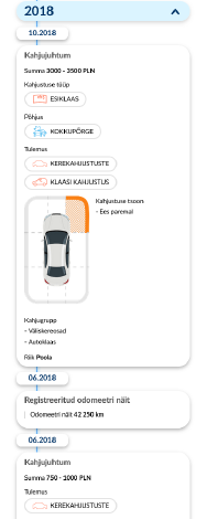 Aruanne võimaldab kontrollida sõiduki dokumente, sealhulgas registreeritud läbisõidu ja omandiõigusega seotud kirjeid. Samuti võite saada ligipääsu teabele, mis sisaldab informatsiooni sõidukiga seotud mahakandmiste, lammutustööde, õnnetuste ja varguste kohta. Aruandele on veel üks huvitav lisa: pakume juurdepääsu USA arhiveeritud müügikuulutustele.